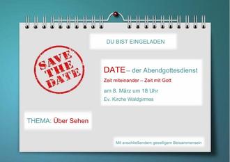 | 18.00 Uhr | „DATE“ der Abendgottesdienst (Thema: Über Sehen) |