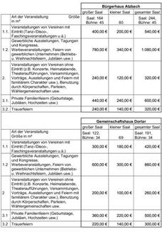 Für die Benutzung des Bürgerhaus Atzbach und der Gemeinschaftshäuser Dorlar und Waldgirmes oder von Teilbereichen sind Entgelte und Kosten nach diesen Bestimmungen zu entrichten.