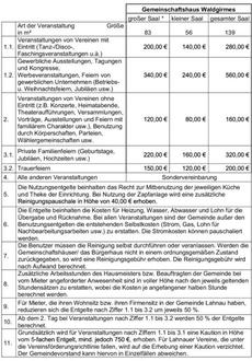 | 5.1. | Die im schriftlichen Nutzungsvertrag festgelegte Zahlung ist spätestens zwei Wochen vor der Veranstaltung bei der Gemeindekasse einzuzahlen. |