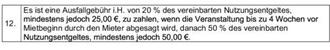 | 5.3. | Das Nutzungsentgelt wird auch dann fällig, wenn die bestellten Räume nicht genutzt werden. |