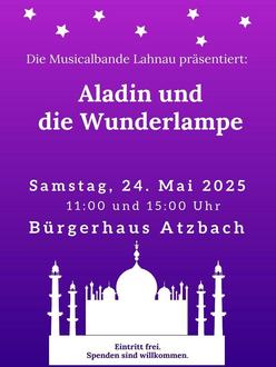 Der Gruppe ist es wieder gelungen, ein neues Musicalprojekt choreografisch aufzuarbeiten und umzusetzen. Es handelt sich dieses Mal um das phantasievolle Theaterstück „Aladin und die Wunderlampe“ für Groß und Klein von Patrick Ritschel (Text) und Uwe Heynitz (Musik) in einer quirligen, quietschbunten und poppigen Musical-Version.