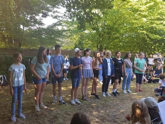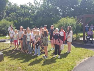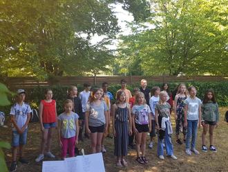 Bei hochsommerlichen Temperaturen sangen zunächst die Gesangsklasse 6b unter der Leitung von Frau Pötter das Lied „Der beste Sommer“. Danach gab die Gesangsklasse 5b mit Frau Behrendt die Lieder „Musik sein“ (Vincent Weiß), „Don’t stop believing“ (Journey) und „Best of us“ (Wier) zum Besten.