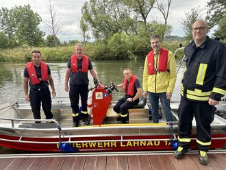 Gemeinsam mit Gemeindebrandinspektor Sebastian Schneider, den aktiven Feuerwehrmännern Karsten Will, Thorsten Schnitker, Jens Oberding und Benjamin Nolte hat Bürgermeister Christian Walendsius sich am 25. Juli von der Einsatzbereitschaft des RTB 1 überzeugt. So kann die Freiwillige Feuerwehr Lahnau gezielt Rettungen im Lahnauer Lahnabschnitt und den angrenzenden Bereichen durchführen. Im Rahmen einer der ersten Fahrten auf der Lahn wurde der Dank für die große ehrenamtliche Einsatzbereitschaft der Feuerwehrkameraden/-innen vom Bürgermeister hervorgehoben.