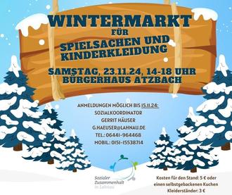 Die Sozialkoordination und Jugendförderung Lahnau laden zum Wintermarkt ein. Alle Kinder, Jugendliche, Eltern und Großeltern können sich gerne mit einem Stand beteiligen oder sind herzlich als Besucher:innen willkommen.