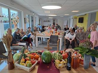 Am 28.9.2023 feierten wir in der Caritas Tagespflege Atzbach mit unseren Gästen und Frau Pfarrerin Bünger das Erntedankfest.