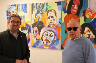 Marius Reusch (l.) und Pierre Ruppel vor einem der farbenprächtigen Gemälde des Künstlers