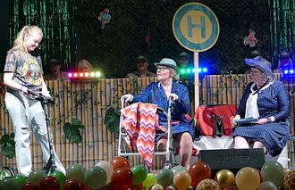 Riesenstimmung gab es bei der Karahighqe-Nummer der Handball-Muddis, hier bei Auftritt des Duos „Baccara“.