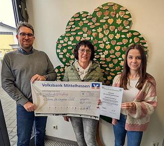 Den symbolischen Spendenscheck für die Baumspendeaktion nahmen Bürgermeister Marius Reusch und Klimaschutzmanagerin Larissa Winter dankbar entgegen. Die Initiative wurde ins Leben gerufen, um auf die zunehmenden Waldschäden in Langgöns zu reagieren. Klimaveränderungen, Borkenkäferbefall und Krankheiten wie die Buchenkomplexerkrankung haben in den vergangenen Jahren große Schäden in den heimischen Wäldern verursacht. Entlang von Wegen und Straßen mussten aus Sicherheitsgründen zahlreiche Bäume gefällt werden.