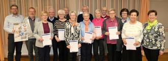 Es gab zahlreiche Ehrungen langjähriger Vereinsmitglieder: Helmut Rudolph hält dem Verein seit 75 Jahren die Treue. Weil er an diesem Abend nicht dabei sein konnte, wird ihm Helga Kohler die Urkunde persönlich nach Hause bringen. Für 70-jährige Mitgliedschaft wurden Werner Brückel und Erwin Rompf, für 65-jährige Mitgliedschaft Monika Kosch, Bernd Meidt und Manfred Boida geehrt. Dabei würdigte die Vorsitzende insbesondere Monika Kosch für ihr jahrzehntelanges Engagement: „Du hast sehr viel für den Verein getan.“ Seit 60 Jahren sind Christel Sommer, Roswitha Ochs, Renate Lüdge, Christa Schwan und Gisela Pönicke dabei, seit 50 Jahren sind es Kurt Langer, Wolfgang Buß, Eugen Isheim, Birgit Frey, Karin Tschernich, Dieter Knorz, Berndt Schwan, Martina Seidel und Elke Luh. Für 40-jährige Mitgliedschaft wurde Elfriede Weitzel gewürdigt, für 25-jährige Mitgliedschaft Sabine Röhm. Martin Zimmermann ist seit 50 Jahren aktiver Sänger, Sieglinde Scherbaum und Sylvia Schnöbel singen sei 25 Jahren.