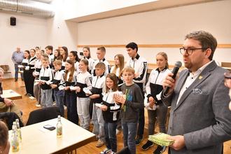 93 Titel haben im vergangenen Sportjahr die Leichtathleten des TSV 1911 Oberkleen auf Kreis-, Lahn-Dill-, Regional-, Hessischen- und Deutschen Meisterschaften errungen. Bürgermeister Marius Reusch nutzte die Gelegenheit der umfangreichen Ehrungen durch den Verein auch dazu, den erfolgreichen Athleten im Dorfgemeinschaftshaus die Glückwünsche der Gemeinde verbunden mit einem Präsent zu überreichen. Geehrt wurden Greta Senftinger, Michel Bender, Ben Richter, Lucie Brachtel, Ylva Wedel, Nino Samassimo, Lenny Toni Bender, Josephine Boller, Laurena Schilling, Celina Glienke, Sophia Rieß, Bastian Ziegenberg, Amelie Bung, Luisa Rudersorf, Sofia Schnorr, Kirstin Schuster, Jannis Bender, Finja Schnorr, Tobias Schuster, Celine Eidmann, Dominik Debus, Christian Dietrich und Annika Metz. ©Foto: Thomas Wißner