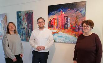 Bürgermeister Marius Reusch mit den beiden Künstlerinnen Jessica Fritsch (l.) und Dr. Susanne Schön.