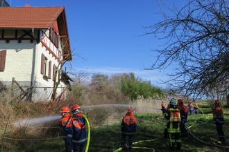 Die Einsatzstelle wurde in 2 Abschnitte aufgeteilt in denen die Jugendlichen beidseitig einen Löschangriff im Aussenbereich durchführten. Darüberhinaus übernahm der erste Abschnitt die Menschenrettung in den angrenzenden Anbauten, während sich der zweite Abschnitt auf die Personensuche auf dem umliegenden Gelände konzentrierte und eine Wasserversorgung aufbaute.