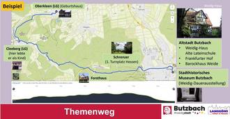 Sein Butzbacher Pendant, Michael Merle (SPD) stimmte dem zu: „Das ist ganz in unserem Sinne.“ Der Themenweg soll den „Demokratiepionier“ Friedrich Ludwig Weidig von seinem Geburtshaus in Oberkleen, über Cleeberg, den Wohnort seiner Kinderjahre, bis hin zu seiner Lebens- und Wirkungsstätte Butzbach würdigen.