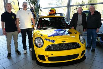 Erinnerungsfoto mit Rallye-Auto und MSC-Legenden (v. l.): Jannis Hamp, Dieter Gass, Wilfried Dreier und Karl-Heinz Bödeker.