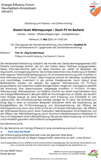 Die Medienberichterstattung anlässlich der Novelle des Gebäudeenergiegesetzes GEG förderte hartnäckige Mythen, die sich den Fakten dieser Titelthese entgegenstellen. Dieses 2-Stunden-Seminar geht auf diese Narrative ein, erklärt an Beispielen die Argumente und Gegenargumente. Die Zuhörer bekommen eine Anleitung zum Erstellen einer eigenen Wirtschaftlichkeitsprognose mit Amortisationsrechnung ihrer Investition in eine Wärmepumpe mit PV-Dach. Diese Prognose erlaubt ein risikofreies, renditestarkes und nachhaltiges Investment in die private Energiewende. Nach Ablauf eines Betriebsjahres werden am Beispiel der eigenen Wärmepumpe mit PV-Dach prognostizierte und tatsächlich erzielte Energie-Fakten verglichen. Das Ergebnis übertrifft die Erwartung: Eine überschaubare, dargelegte Investition in PV-Dach, PV-Akku, Wärmepumpe, Wärmespeicher und Wallbox machte aus einem fossil beheizten Haus der Energie-Effizienzklasse C (Baujahr 2003) ein Plus-Energie-Haus A+ (2024), das deutlich mehr Energie erzeugt als seine Bewohner samt E-Heizung und E-Mobilität im Jahr verbrauchen. Die Amortisationsphase beträgt weniger als 10 Jahre. Der Schlüssel zum Erfolg liegt in einer an konkreten Beispielen erläuterten Kette der Maximierung der Energieeffizienz der PV-Stromerzeugung und Stromspeicherung, der Effizienz der Wärmegewinnung durch eine State-of-the-Art Luft-Wasser-Wärmepumpe, der Effizienz der Wärmespeicherung durch einen hydraulisch teilentkoppelten Schichtspeicher und der Effizienz der Wärmeübertragung durch Aluminium-Niedertemperatur-Heizkörper im Haus mit Holzparkett ohne Fußbodenheizung. Die private Sektor Kopplung von E-Wärme und E-Mobilität garantiert wirtschaftliche Synergieeffekte.