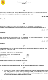 Aufgrund der §§ 94 ff der Hessischen Gemeindeordnung (HGO) in der Fassung der Bekanntmachung vom 07. März 2005 (GVBl. I S. 142), zuletzt geändert durch Artikel 2 des Gesetzes vom 16. Februar 2023 (GVBl. S. 90,93) hat die Gemeindevertretung der Gemeinde Langgöns am 13. Februar 2025 folgende Haushaltssatzung beschlossen: