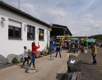 Gleich mehrere spannende Aktionen gab es auf dem Firmengelände von „Boller Rocks“ in der Holzheimer Straße 87: Hier herrschte geradezu Volksfeststimmung mit Abenteuerspielplatz-Atmosphäre. Die Pfadfinder boten das beliebte Kistenklettern an, außerdem gab es Dosenwerfen, eine Riesenhüpfburg und bei den Basketballern des TSV Lang-Göns konnten die Kids an kleinen Körben trainieren.