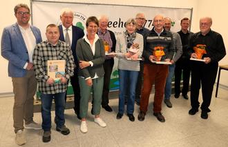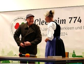 Das Publikum erwartete eine kurzweilige Mischung aus Bildung, Unterhaltung und einem tiefen, mal sehr berührenden, mal humorvollen Einblick in die Geschichte der beiden Dörfer. Den Auftakt machte Martin Hanika mit der Vorstellung des Jubiläumsbuches „Cleeheim 774“. Er ist der Herausgeber des etwa 200 Seiten umfassenden, mit vielen historischen Fotos reich bebilderten Werkes. „Wir haben ein schönes Buch fortgeschrieben“, sagte er. Im ersten Teil des Buches wird der vollständige Inhalt der Festschrift aus dem Jahr 1974, die anlässlich der 1200-Jahr-Feier verfasst wurde, neu aufgelegt. Sie war von dem inzwischen verstorbenen Karl H. Glaum, Studiendirektor an der Goetheschule in Wetzlar, geschrieben worden. Der zweite, neue Teil dokumentiert die Entwicklung der letzten 50 Jahre seit der Veröffentlichung der Festschrift im Jahr 1974. Von Veränderungen im Arbeitsleben, in der Dorfgemeinschaft, bei Vereinen, dem Freizeitverhalten, Wohnen bis hin zu den Traditionen und dem Dialekt – das Buch ist ein lebendiges Zeugnis vergangener Zeiten. Hier sind die Autoren neben Martin Hanika, der auch das Konzept erstellt hat, Doris Müller-Heinz und Hans-Joachim Röhrig. Gerhard Stahl war für das Layout und die fertige Druckvorlage verantwortlich. Hanika dankte diesem Team, zu dem auch Barbara Keden als Fotografin gehörte, ausdrücklich.