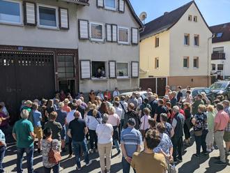 Zum Abschluss wurde bewusst die ehemalige Synagoge als letzter Halt gewählt – ein Ort mit bewegter Geschichte, der 2026 sein 100-jähriges Bestehen feiern wird. Besonders berührend war die Erinnerung an ein erhaltenes Glaskristall vom Deckenleuchter, das ein Junge nach der Reichspogromnacht rettete. Es steht symbolisch für Hoffnung und den Wunsch, eines Tages wieder einen Leuchter mit vielen Kristallen in der Synagoge erstrahlen zu lassen. Wer dieses Vorhaben unterstützen möchte, das Werner Reusch, Andreas Catlin und Martin Jung sich zum Ziel gesetzt haben, fand am Ausgang ein Spendenkästchen.