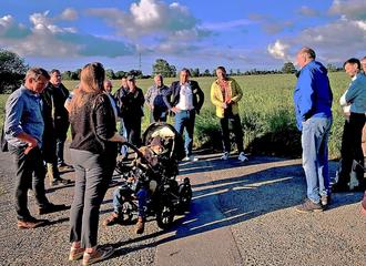 Im Anschluss an die Info-Veranstaltung spazierten einige Besucher mit den Veranstaltern zur Fläche „Ochsenmahr“ (im Hintergrund).
