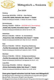 Der Mittagstisch hat keine Altersbegrenzung und alle Nachbarorte sind jeweils herzlich eingeladen!