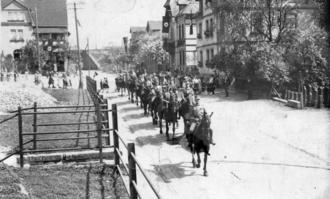 Reitergruppe der SA-Langgöns am 1.5.1935 in der damaligen Moorgasse, heute Am Mühlberg