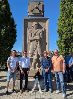 Gedenken am Denkmal in Pohl-Göns (v. l.): Martin Jung, Bürgermeister Sascha Huber, Werner Reusch und Andreas Catlin