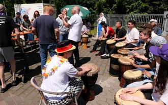 Lang-Göns (ikr). Auch in diesem Jahr war das traditionelle Sommerfest des Wohnheims Langgöns der Schottener Sozialen Dienste gGmbH bei schönem Sonnenschein und angenehmen Temperaturen wieder sehr gut besucht. In der Einrichtung leben Menschen mit seelischen, geistigen und teilweise auch körperlichen Einschränkungen. Leistungsmanagerin Lena Noll begrüßte gemeinsam mit dem Sprecher des Klientenrats die Bewohner, deren Familienangehörige und zahlreiche Gäste. Die Klienten des Wohnheims freuen sich jedes Jahr sehr auf ihr großes Fest: Denn an diesem Tag kommen viele Gäste, die gemeinsam mit den Bewohnern das bunte Programm genießen. Es gab u. a. eine Luftballon-Aktion, wer Lust hatte, konnte sich im Weben versuchen, Selbstgemachtes wie Glückwunschkarten, Dekoratives aus Holz und Filz, Vogelhäuschen und Marmelade konnte erworben werden, und eine externe Trommelgruppe unter der Leitung von Nader Madjidian zeigte am Mittag ihr Können. Anschließend nutzten auch einige Klienten die Gelegenheit, gemeinsam mit den Musikern zu trommeln, was bei den Schnupper-Trommlern und den Zuschauern für viel Vergnügen sorgte. Das Publikum klatschte gerne im Takt mit und spendete viel Applaus. Auch die Räume der Tageseinrichtung konnten besichtigt werden. Mit Grillstation sowie Kaffee und Kuchenbuffet war für das leibliche Wohl bestens gesorgt.