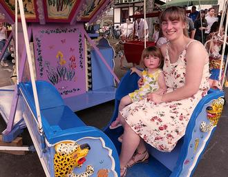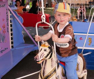 Die jüngsten Besucher haben viel Spaß auf dem historischen Kinderkarussell