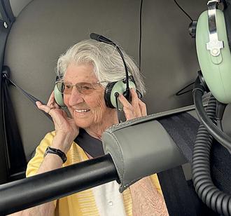 Mutig und neugierig: Wilhelmine Hoffmann genießt mit 93 Jahren ihren ersten Rundflug aus der Vogelperspektive.