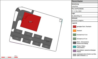 Über die Luftbilder ist die Art der Versiegelung nicht ersichtlich, daher sind diese zunächst als Vollversiegelte Fläche ausgewiesen. In den Tabellen können daher Änderungen zunächst für die Dachflächen und im Weiteren für die versiegelten Flächen vorgenommen werden: