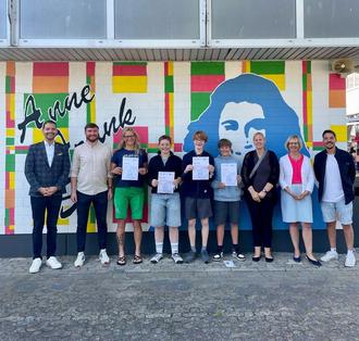 6.426 Kilometer haben 48 Teilnehmer der Anne-Frank-Schule (AFS) beim diesjährigen Stadtradeln und der hier eingebunden Aktion „Schulen aufs Rad“ zurückgelegt. In der Teamwertung der Stadt Linden schaffte es die Schule so auf einen dritten Platz (unter 24 Teams), so dass zur Ehrung der Schule durch Schulradel-Koordinator Max Weiß und Schulleiterin Myriam Hövel auch Bürgermeister Fabian Wedemann (CDU) und der für das Stadtradeln bei der Stadtverwaltung zuständige Klimaschutzmanager David Stadermann hinzukamen um die erfolgreichen Schüler und Klassen auszuzeichnen. Ziel des Wettbewerbs ist es, Schüler und Schülerinnen fit für das Radfahren im Alltag zu machen und so die eigenständige Mobilität von Kindern und Jugendlichen zu fördern.