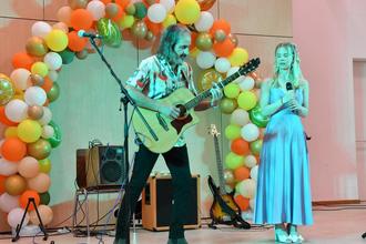 Die von Martin Hering-Pownall (Gitarre) geleitete Schulband wartete zwei Solovorträgen auf. Amelie Bender (rechts) sang den Abba-Hit „Slipping through my fingers“ und Sam Watz „Starman“ von David Bowie.