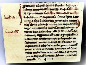 Abbildung der Schenkungsurkunde der „Cleheimer Marca“ vom 11. September 774.