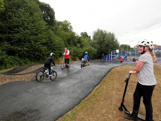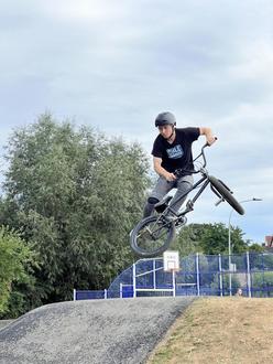 Martin Hanika verzichtete auf einen Redebeitrag und forderte die jungen Besucher lieber auf, den Pump Track in Besitz zu nehmen. Die ließen sich das nicht zweimal sagen. Während die älteren Kids die Strecke mit dem Fahrrad befuhren, nahmen die Jüngeren den Tretroller, alle hatten großen Spaß. Später zeigten drei Profis, die Johannes Winkelmann vom Unternehmen Cycle Training präsentierte, ihr akrobatisches Können. Lara Lessmann, Olympiateilnehmerin in Tokio und Mitglied im deutschen BMX-Nationalteam, Nils Petersen und Max Groß, der 16-jährige Newcomer der BMX-Szene, beeindruckten ihr Publikum mit einer atemberaubenden und großartigen Show.