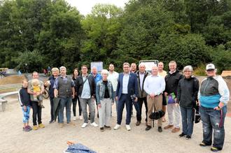 Die an der Verwirklichung der JugendAktiv Arena Beteiligten um Bürgermeister Marius Reusch (Mitte) freuten sich über die schon rege Nutzung der Anlage