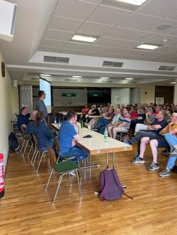 Herr Schäfer von der KEEA berichtete ebenso über die zukünftige Wärmeversorgung, über die derzeit heftig diskutiert werde. Hier scheinen Wärmenetze oft als gute Lösung angeführt. Aufgrund der örtlichen Gegebenheiten im Quartier müsste hier allerdings eine Machbarkeitsstudie in Auftrag gegeben werden, welche nur bei ausreichendem Interesse innerhalb der Bevölkerung in Auftrag gegeben würde. Interessenten für ein mögliches Nahwärmenetz konnten sich am Ende der Veranstaltung in eine bereitliegende Liste eintragen. Dies kann aber auch im Nachgang noch bei der Gemeinde erfolgen.