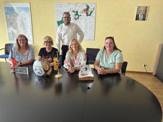 Bürgermeister Marius Reusch empfing den neuformierten Vorstand des Partnerschaftsvereins Langgöns zu einem Arbeitstreffen um Details zur geplanten Reise in die französische Partnerstadt Clouange abzusprechen. Mitte Juni hatten sich die Mitglieder des geschäftsführenden Vorstands umformiert und dies wurde anlässlich der Mitgliederversammlung durch die anwesenden Mitglieder bestätigt. Als 1. Vorsitzende fungiert nun Barbara Arnheiter, die Tochter des Vereinsinitiators Manfred Boida. 2. Vorsitzende ist Kerstin Menges, Petra Fuchs ist nun für die Kasse und Finanzen verantwortlich und Anja Asmussen fungiert weiterhin als Schriftführerin.
