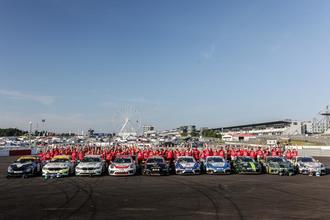 Teamfoto von Sorg Rennsport mit den zehn eingesetzten Fahrzeugen des Rennstalls beim 24h-Rennen