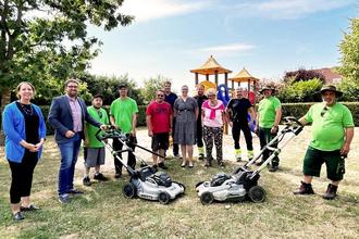 Langgöns (-). Sükrü, Orhan und Toni gefällt die Arbeit im Freien. Vor allem das Rasenmähen macht den drei Männern Spaß, die Beschäftigte der Werkstatt Lollar (WeLo) sind. In der Einrichtung der Lebenshilfe Gießen für Menschen mit Behinderung reifte schon länger der Entschluss, eine Garten- und Landschaftsgruppe ins Leben zu rufen. Seit April sind Sükrü, Orhan und Toni gemeinsam mit Gruppenleiter Torsten Rühl nun auf öffentlichen und privaten Grünflächen im Einsatz. Zu den ersten Auftraggebern gehörte die Gemeinde Langgöns. In Dornholzhausen wird die Garten- und Landschaftsgruppe inzwischen in festen Gebieten eingesetzt und sorgt – teilweise gemeinsam mit Mitarbeitern des Bauhofs – unter anderem auf dem Spielplatz-, Kita- und Feuerwehrgelände für ein gepflegtes Erscheinungsbild. Gemeinde und Lebenshilfe profitieren gleichermaßen von dem „wunderschönen Projekt“, wie Bürgermeister Marius Reusch die Kooperation bei einer offiziellen Vorstellung nannte.