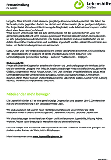 Lebenshilfe-Aufsichtsratsvorsitzende Maren Müller-Erichsen lobt das Projekt für seinen inklusiven Charakter: „Es ist wichtig, dass wir nicht in unseren Mauern bleiben, sondern nach außen gehen. Der Bedarf ist da. Der Austausch zwischen Menschen mit und ohne Behinderung ist eine große Bereicherung für alle.“ Dr. Rebecca Neuburger-Hees, Mitglied der Geschäftsführung, freut sich über das neue Arbeitsangebot. „Es bedeutet uns als Lebenshilfe viel, solche Tätigkeitsfelder, in den Kommunen, im Leben, anbieten zu können“, betont sie. Der Betriebsleiter der Gemeindewerke Langgöns, Mike Schmidt, erklärt, dass eine ganzjährige Zusammenarbeit geplant ist. „Wir stehen der Sache sehr positiv gegenüber. Auch in den Herbst- und Wintermonaten gibt es genügend Aufgaben. Das Projekt bietet Menschen mit Behinderung die Möglichkeit, in die Arbeit reinzuschnuppern und ist damit etwas Besonderes“, so Schmidt.