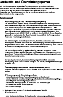 Folgende Übermittlungssperren können formlos, ohne Angabe von Gründen, beantragt werden: