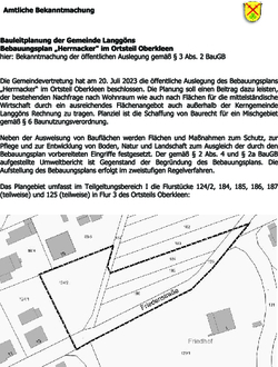 Die Gemeindevertretung hat am 20. Juli 2023 die öffentliche Auslegung des Bebauungsplans „Herrnacker“ im Ortsteil Oberkleen beschlossen. Die Planung soll einen Beitrag dazu leisten, der bestehenden Nachfrage nach Wohnraum wie auch nach Flächen für die mittelständische Wirtschaft durch ein ausreichendes Flächenangebot auch außerhalb der Kerngemeinde Langgöns Rechnung zu tragen. Planziel ist die Schaffung von Baurecht für ein Mischgebiet gemäß § 6 Baunutzungsverordnung.