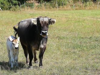 Warum aber ausgerechnet diese alte Alpenrinderrasse? Der Langgönser erklärt: „Rätisches Grauvieh ist klein, robust, friedlich – und perfekt für unsere Weiden. Sie sind hervorragende Mutterkühe, kalben leicht und sind langlebig. Und ich wollte immer schon eine Rasse, die noch Ursprünglichkeit ausstrahlt.“ Anne nickt: „Sie kommen mit kargem Futter zurecht, sind freundlich, genügsam und trampeln die Wiesen nicht kaputt. Das ist ideal.“