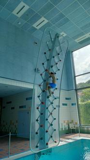 Ein besonderes Highlight war die Kletterwand im Schwimmbadbereich! Die Kinder waren begeistert, ihre Kletterfähigkeiten zu testen und sich gegenseitig zu motivieren. Manche wagten sich sogar bis ganz nach oben, um die Aussicht zu genießen, während andere noch vorsichtig waren und erst einmal die ersten Griffe ausprobierten. Es war schön zu sehen, wie alle Mut fassten und gemeinsam Spaß beim Klettern