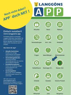 Zusätzlich zu den Warnungen und Notfallmaßnahmen des Katastrophenschutzes wird unsere neue LANGGÖNS APP auch über die PUSH Nachrichten zum Einsatz kommen und mit einer aktuellen aufpoppenden Nachricht die Bürger warnen.
