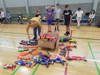 Die Karl-Zeiß Halle vibrierte an diesem Vormittag vor excitement, als Funtastic Sport Wetzlar e.V. die Kinder ab 8 Jahren zu einem actionreichen Spiel mit NERF Blastern begrüßte. Unter fachkundiger Anleitung lernte die Gruppe zuerst die Sicherheitsregeln und das verantwortungsvolle Handling der Ausrüstung. Schon beim Aufwärmen zeigte sich die mitreißende Energie der Teilnehmer: schnelle Bewegungen, flinke Reaktionen und eine gute Koordination prägten das Training.