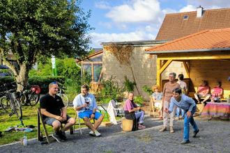 Hier kann man es sich in geselliger Runde richtig gut gehen lassen: Es ist ein Ort der Begegnung und der Freude geworden – ob für Radfahrer, Wanderer, die Seniorengymnastikgruppe oder alle anderen, die sich einfach eine schöne Zeit machen wollen. "Der Begegnungsgarten ist mehr als nur ein Garten, er ist ein lebendiger Treffpunkt, an dem man verweilen und die Gemeinschaft genießen kann", betont Müller-Heinz voller Begeisterung.