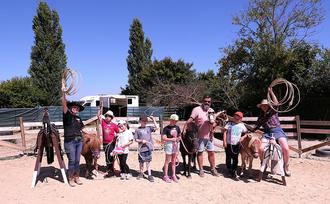 Langgöns (ikr). Das Lasso schwingt im weiten Bogen durch die Luft, das Seil zischt leise – und mit einem Jubelschrei des Kindes landet die Schlinge genau über dem Hals des Holzpferdes. Rundherum lachen Mädchen und Jungen, in der Nähe schnaubt ein Pony: Das Gelände des noch jungen Vereins EquiCare am Rande von Lang-Göns verwandelte sich kürzlich in eine kleine Western-Ranch – mit Lassos, Holzpferden, echten Ponys und jeder Menge Cowboy- und Cowgirl-Gefühl.