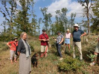 Der abwechslungsreiche Auf- und Abstieg zum Wildhof über die Rosterthütte war gespickt mit unterhaltsamen wie nachdenklichen Anekdoten, die von den Teilnehmenden selbst vorgetragen wurden. Am Ziel, den Eichenschadflächen am Wildhof, erläuterte Förster Frank Bremer die bisherigen Fortschritte der Naturverjüngung und gab einen Ausblick auf die künftige Entwicklung der Waldflächen.